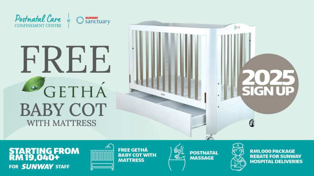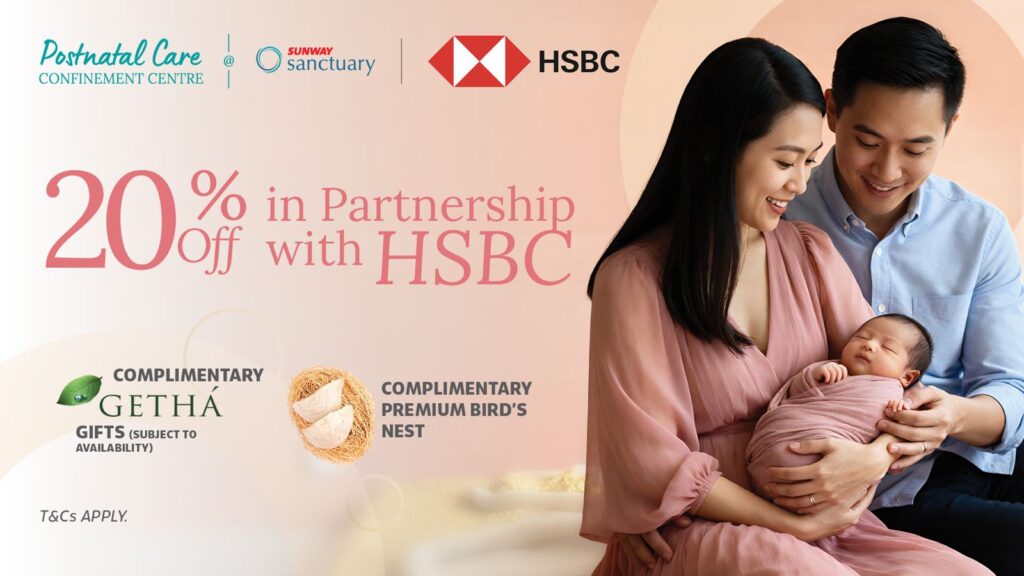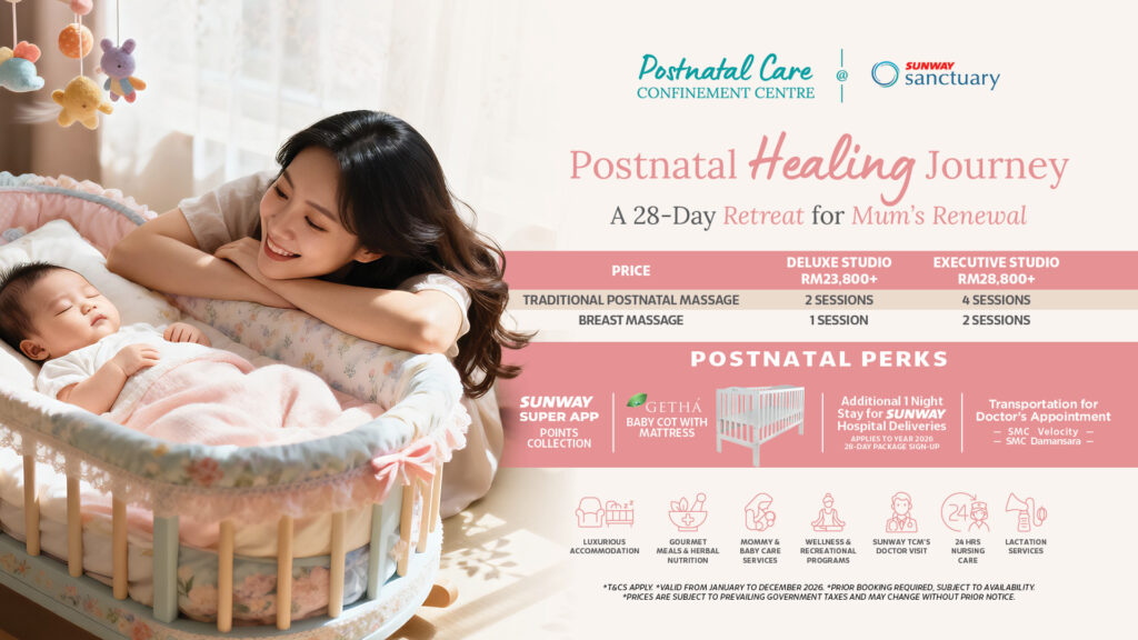 Sunway Sanctuary’s signature 28-day postnatal retreat offers Deluxe Studio and Executive Studio packages starting from RM25,800+.